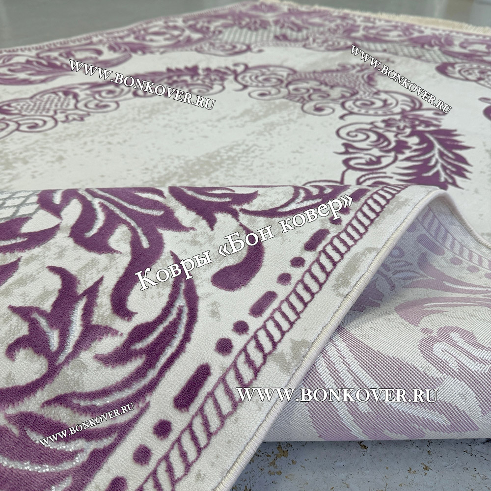 Красивый Ковер Медальон Для Гостиной Дизайн 30543 Сиреневый наполняет интерьер гостиной теплом и уютом, гармонично сочетает в себе изящество и красоту. Он создан из экологически чистого сырья, комфортный и долговечный.