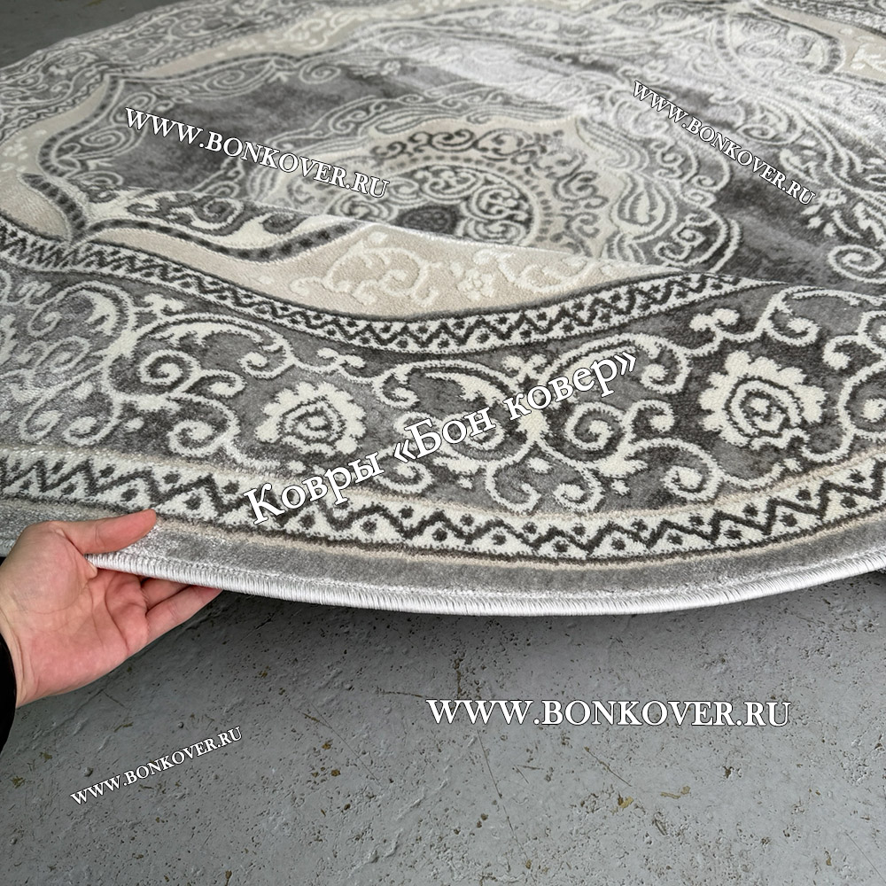 Шикарный Круглый ковер в гостиную дизайн 01 Серый наполняет интерьер квартиры теплом и уютом, гармонично сочетает в себе изящество и красоту. Он изготовлен из износостойких материалов, комфортный и долговечный.